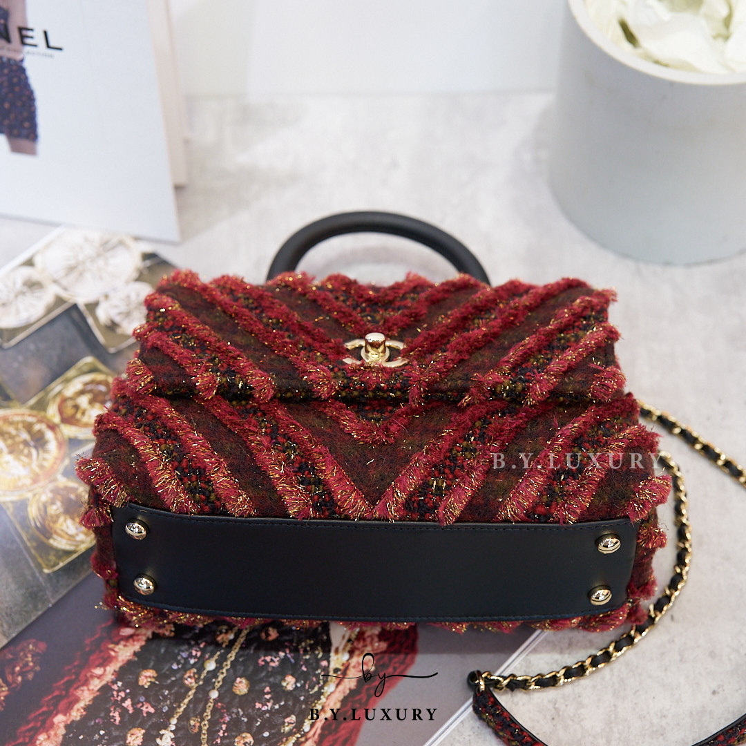 全新現貨 CHANEL Coco Handle Small Bag Red Tweed 斜紋軟呢 紅色 淡金扣